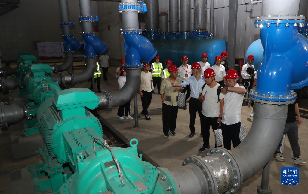 9月22日,觀摩團成員在中建二局安裝公司機電項目冷凍機房施工展示區內參觀。