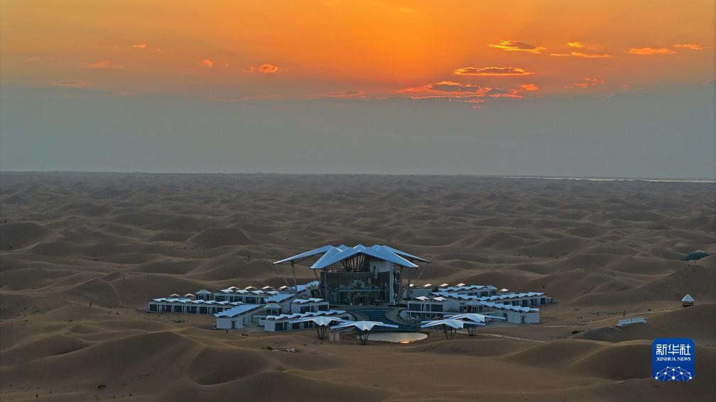 位於中衛市沙坡頭景區的星星酒店(9月6日攝,無人機照片)。