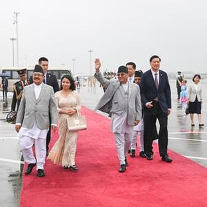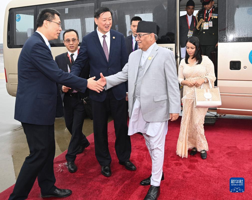 9月23日上午,來華出席杭州亞運會開幕式的尼泊爾總理普拉昌達抵達浙江省杭州市。