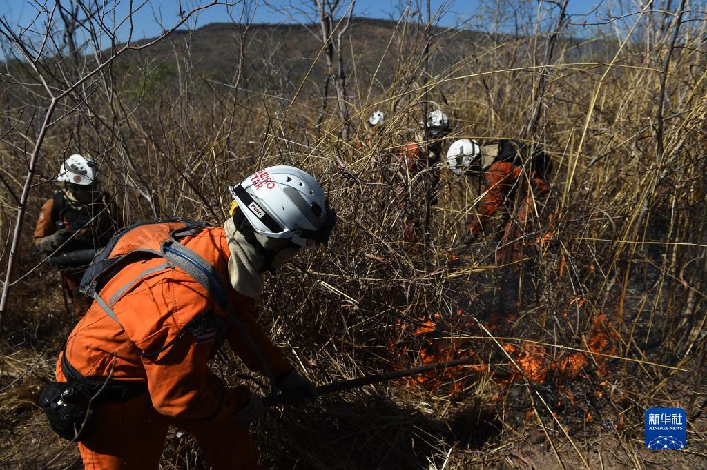 9月22日,消防人員在巴西巴伊亞州裏亞尚-達斯內維斯附近進行滅火作業。