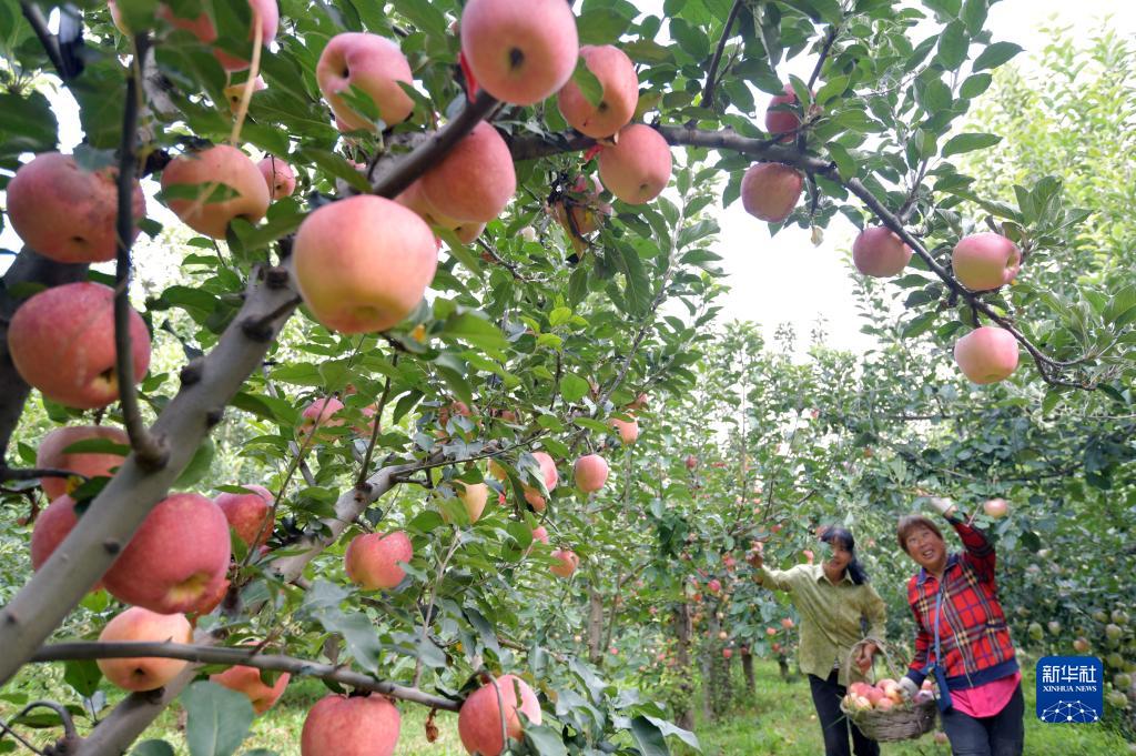 9月23日,河北省石家莊市井陘縣東山村農民忙着采收蘋果,供應節前市場。
