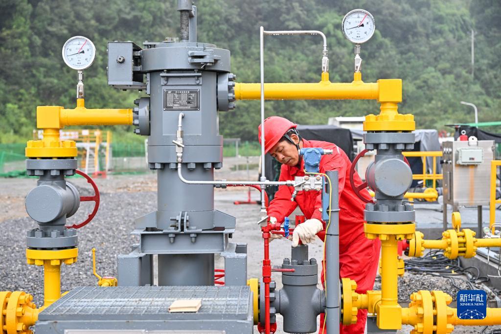 技術人員在位於重慶忠縣的涪陵頁巖氣田興頁L1001井對設備進行巡檢(9月19日攝)。