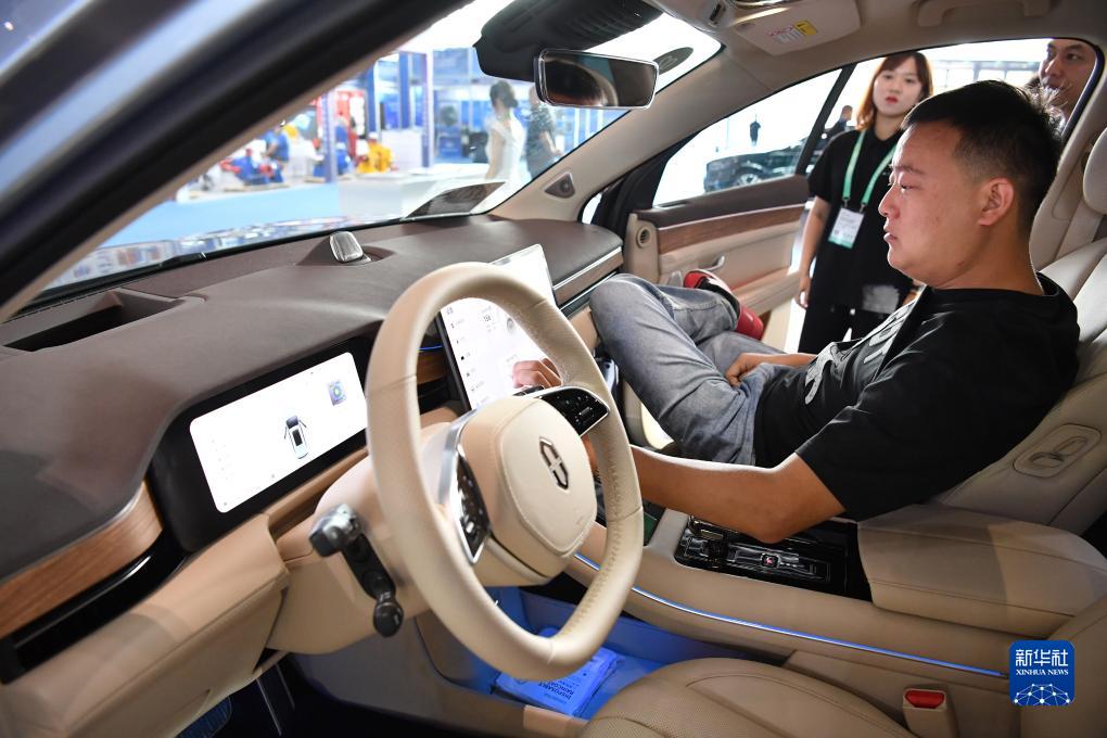 9月22日,觀眾在展會上體驗一款新能源汽車。