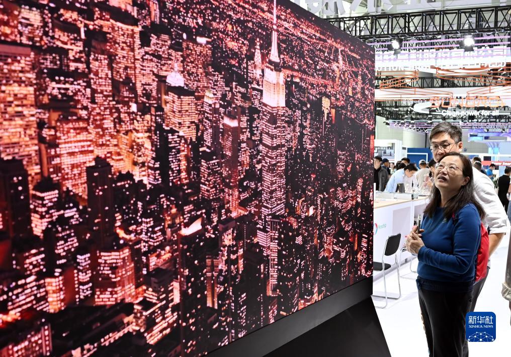 9月22日,觀眾在2023世界製造業大會集成電路與新型顯示展區觀看一款LED顯示屏。