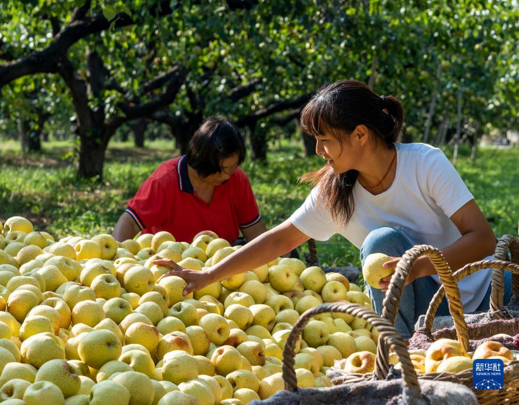 九月,安徽省宿州市碭山縣梨園裏一派忙碌的收穫景象,梨農們搶抓晴好天氣,採摘銷售新鮮酥梨。近年來,碭山酥梨産業越來越旺,成為群眾致富增收的“金名片”。目前,全縣梨樹種植面積約為40萬畝,其中酥梨約25萬畝。