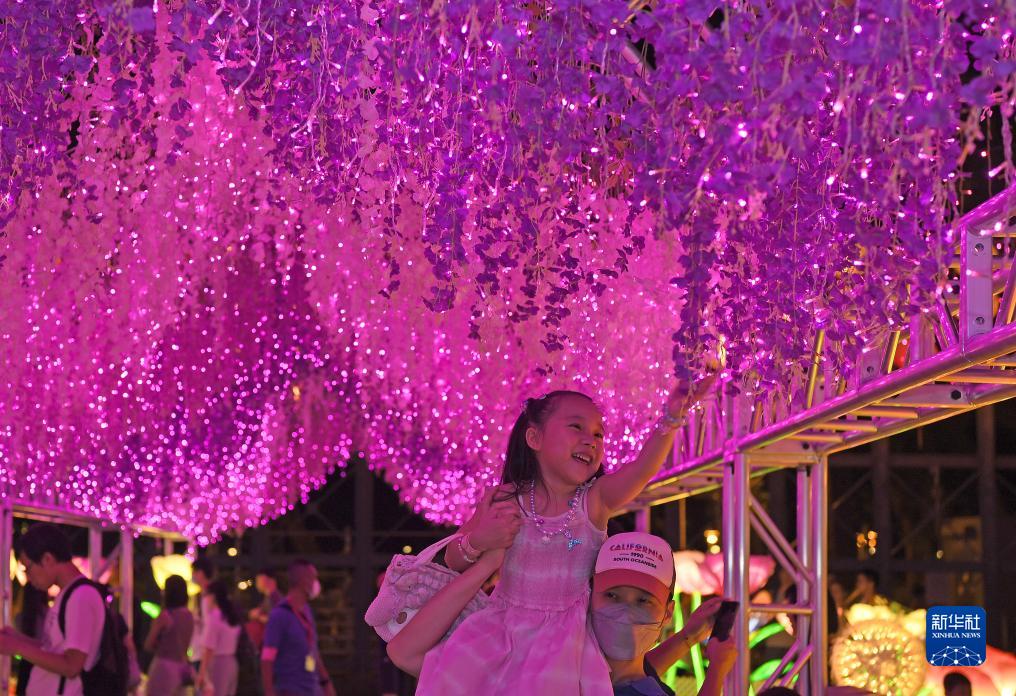 9月23日,一名小女孩在香港維多利亞公園參觀中秋燈會。