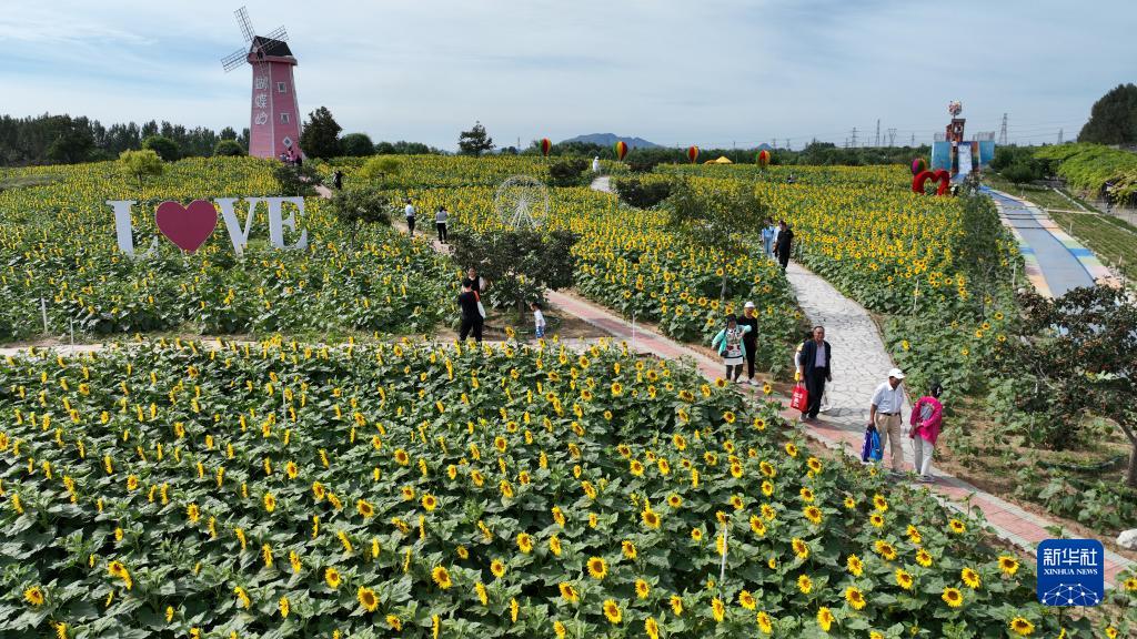 9月23日,遷安市一公園向日葵盛開,市民紛紛入園參觀游玩。