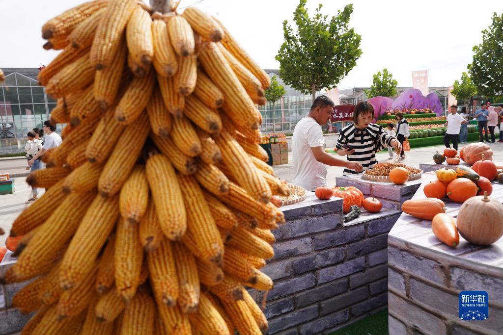 9月23日,在遷安市豐收節慶祝活動現場,市民在選購農産品。