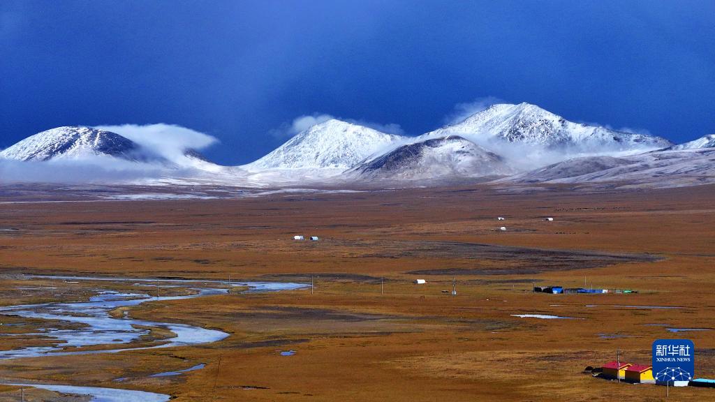 金秋時節,在位於三江源地區的青海省玉樹藏族自治州境內,雪山、草原、雲海、牛羊組成一幅壯美的秋日畫卷。