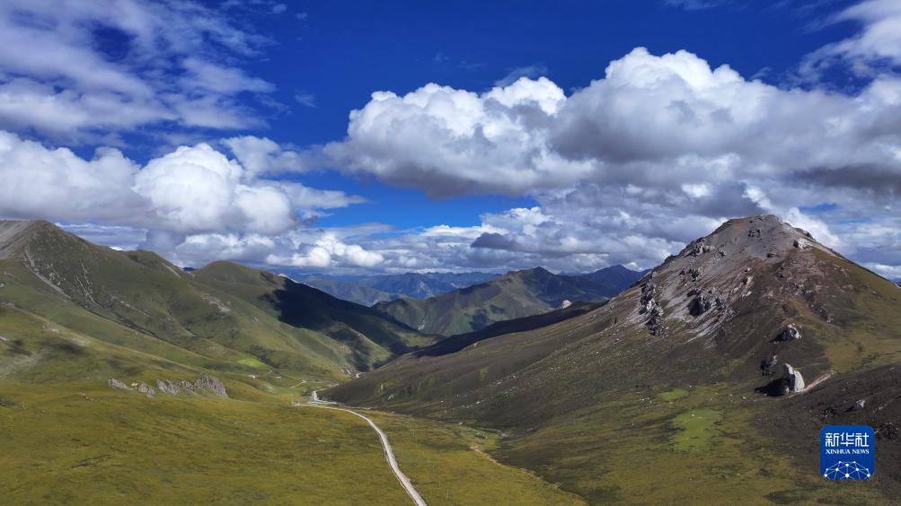 金秋時節,在位於三江源地區的青海省玉樹藏族自治州境內,雪山、草原、雲海、牛羊組成一幅壯美的秋日畫卷。