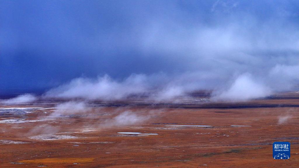 金秋時節,在位於三江源地區的青海省玉樹藏族自治州境內,雪山、草原、雲海、牛羊組成一幅壯美的秋日畫卷。