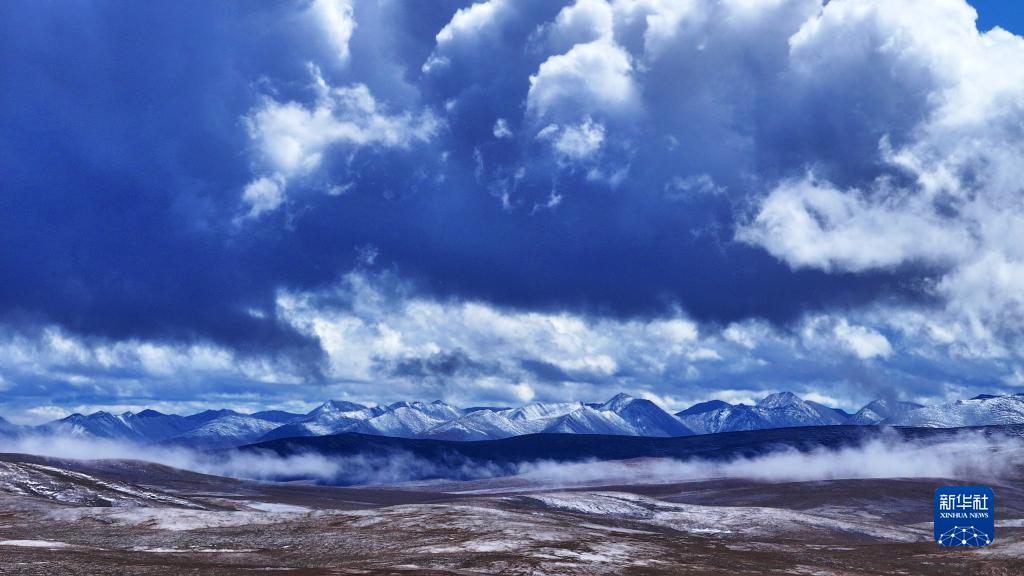 金秋時節,在位於三江源地區的青海省玉樹藏族自治州境內,雪山、草原、雲海、牛羊組成一幅壯美的秋日畫卷。