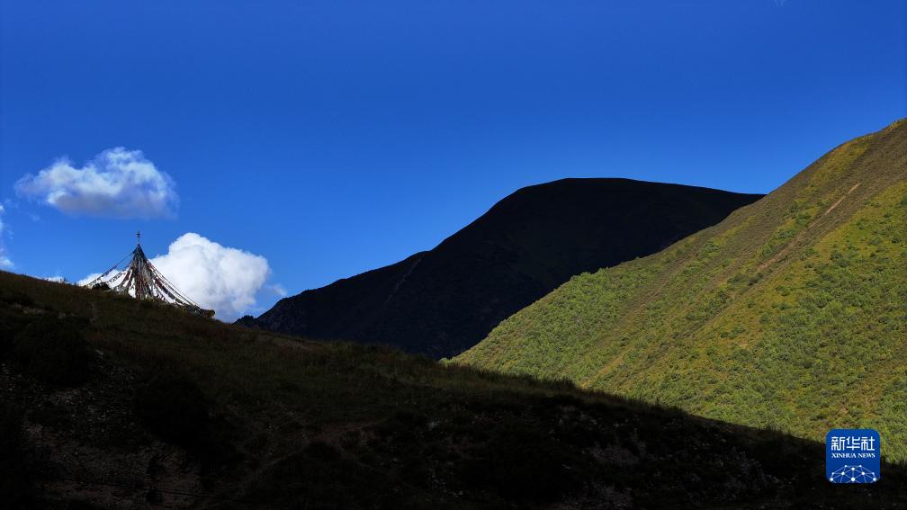 這是9月21日在青海省玉樹藏族自治州玉樹市境內拍攝的秋日風光(無人機照片)。