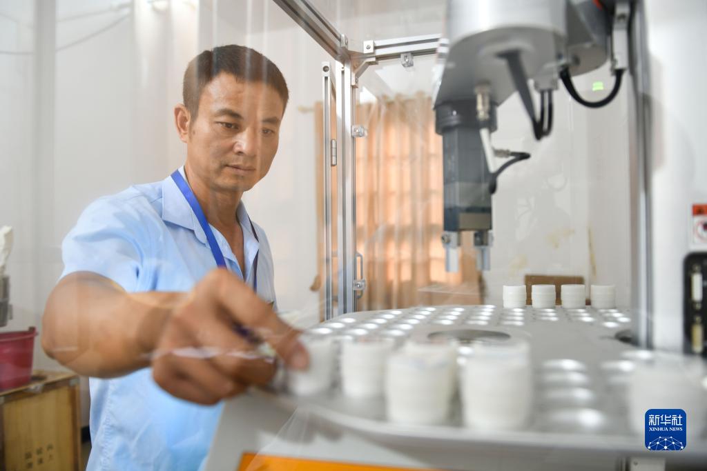 9月24日,在湖南省永州市道縣梅花鎮一家糧食收購企業,工作人員在對稻穀樣本進行質量檢測。