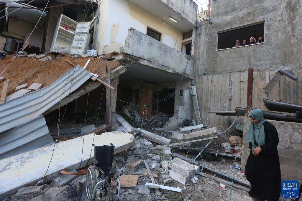 9月24日,在約旦河西岸城市圖勒凱爾姆,巴勒斯坦人在衝突後查看受損建築。