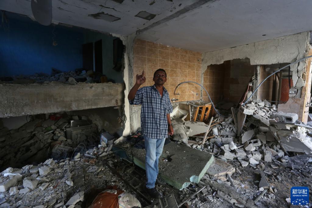 9月24日,在約旦河西岸城市圖勒凱爾姆,一名巴勒斯坦男子在衝突後查看受損建築。