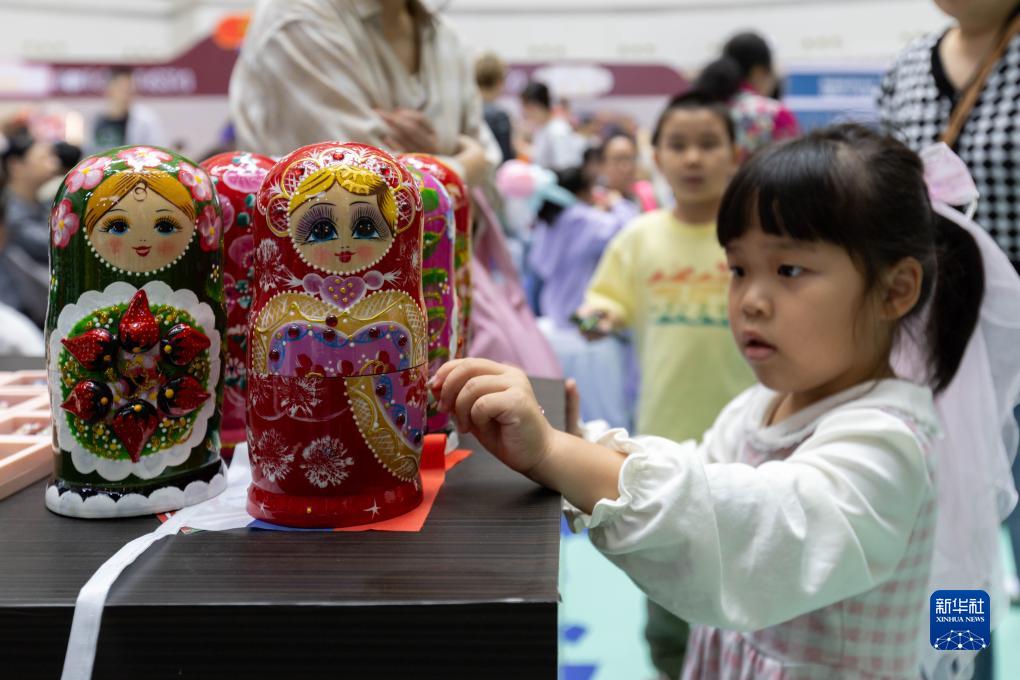 9月24日,小朋友挑選俄羅斯套娃。