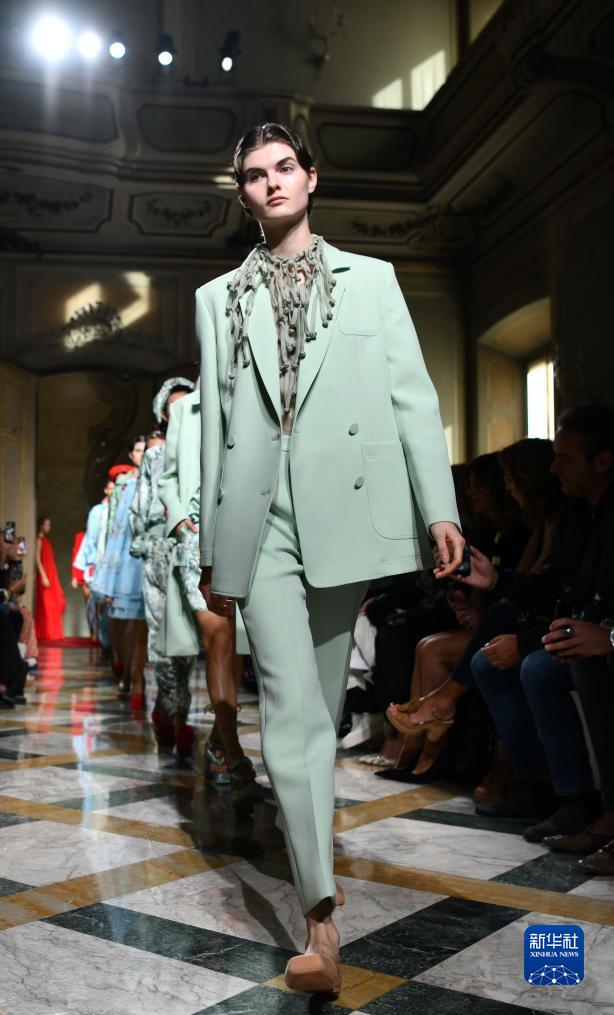 9月24日,模特在意大利米蘭時裝周上展示含有貴州苗繡元素的設計時裝。