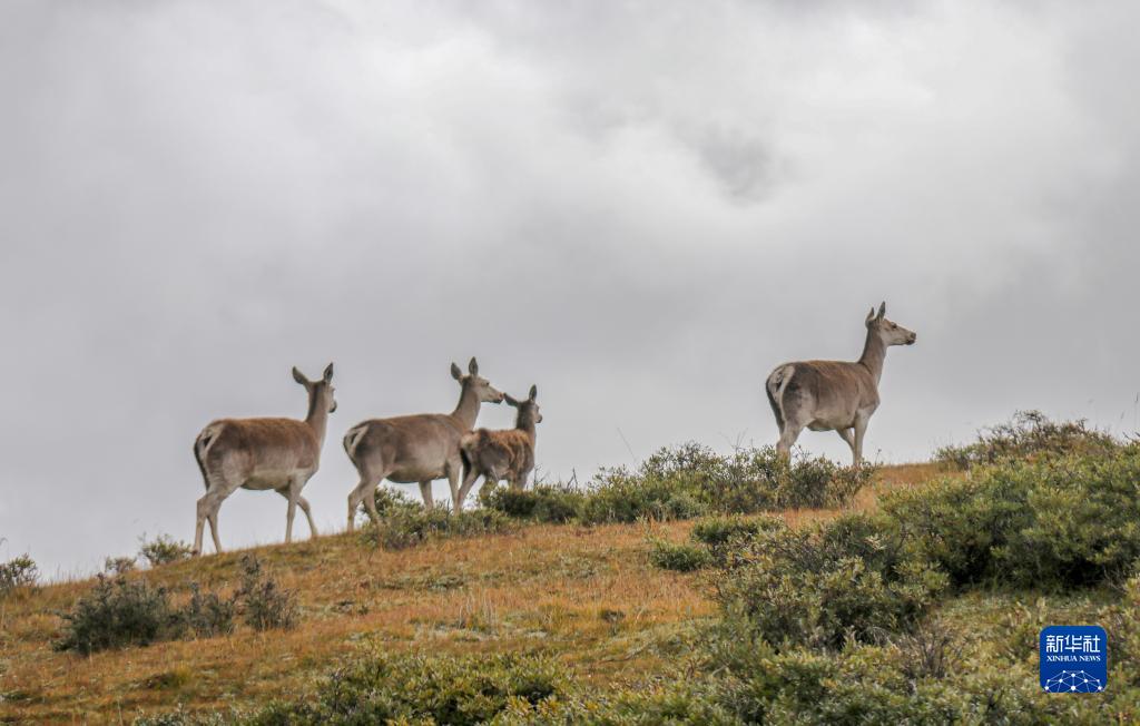 9月24日,幾隻西藏馬鹿出現在位於西藏自治區山南市桑日縣的貢德林草原上。