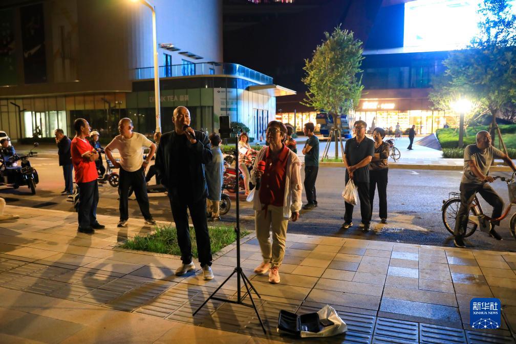 居民在雄安新區容東片區雙文街附近休閒娛樂(9月19日攝)。