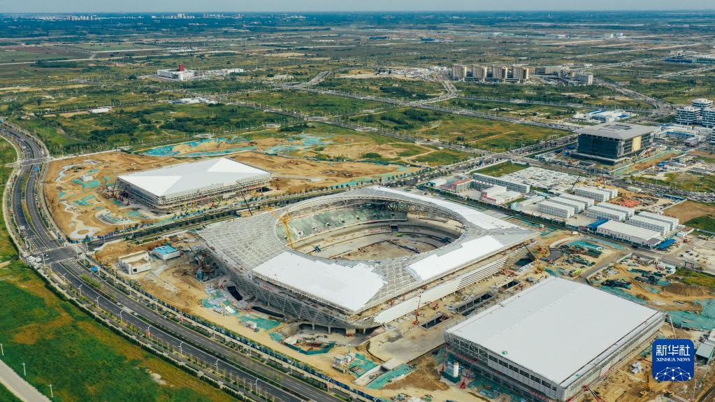 在雄安新區啟動區拍攝的雄安體育中心(9月20日攝,無人機照片)。