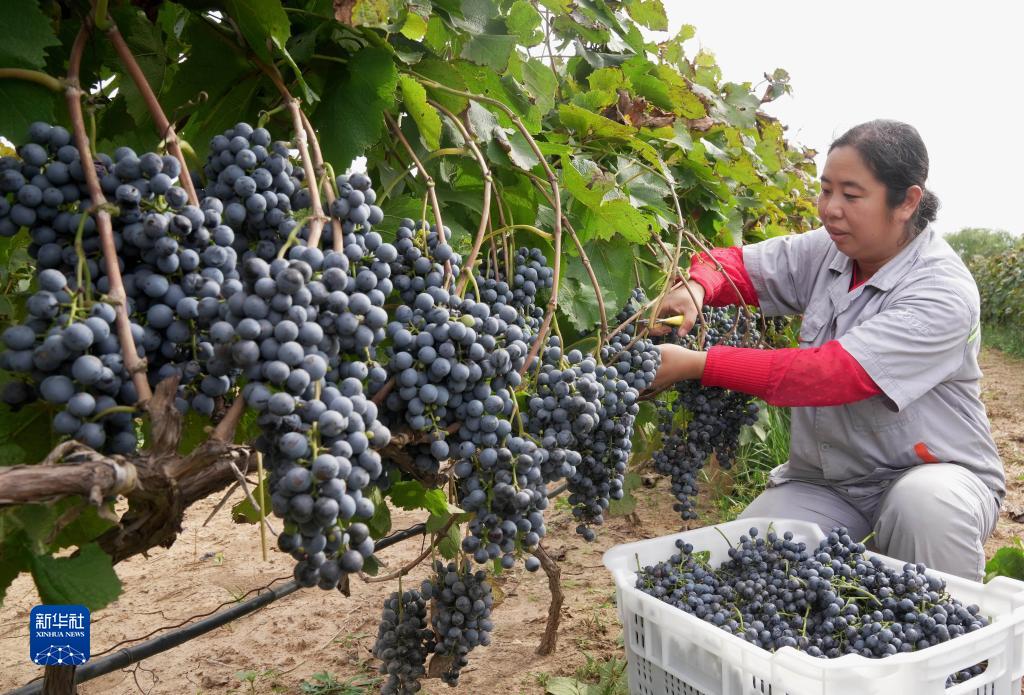 9月25日,河北省盧龍縣盧龍鎮一家葡萄酒企業的工人在釀酒葡萄種植基地採摘釀酒葡萄。
