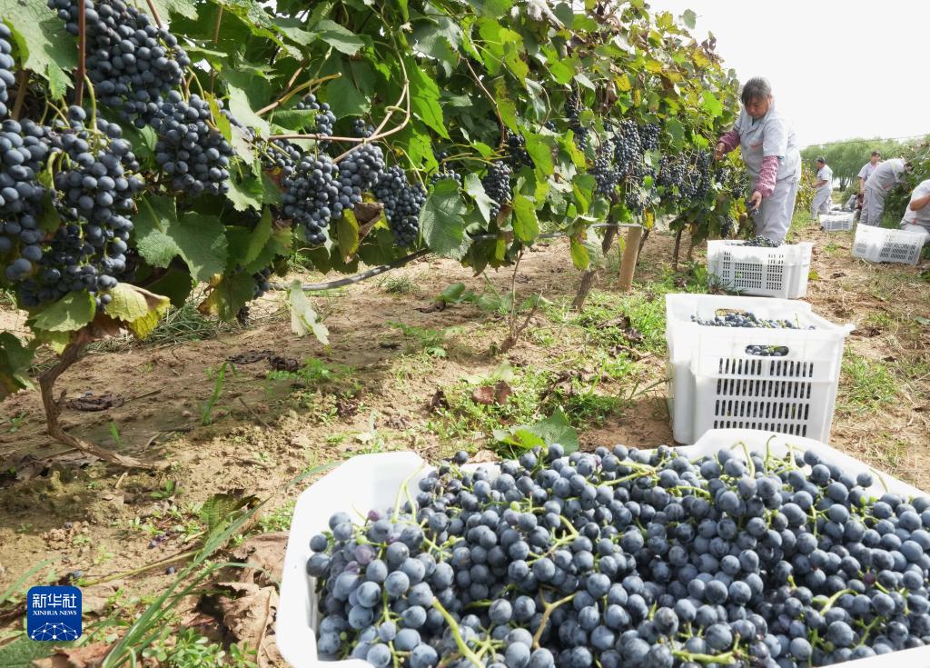 9月25日,河北省盧龍縣盧龍鎮一家葡萄酒企業的工人在釀酒葡萄種植基地採摘釀酒葡萄。