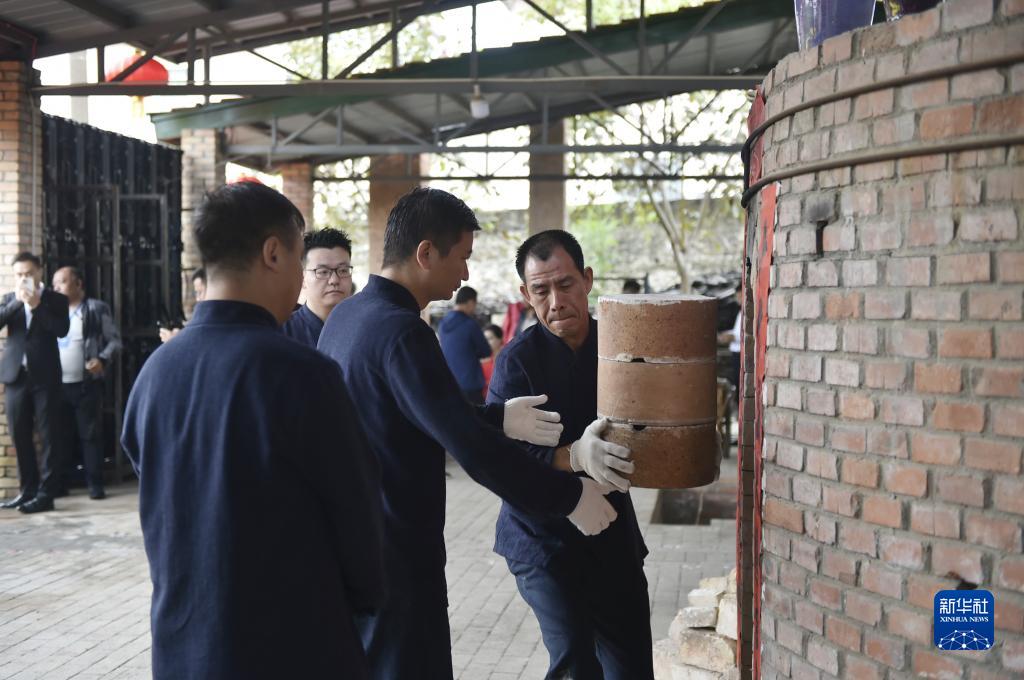 9月25日在禹州市神垕鎮孔家鈞瓷拍攝的開窯儀式現場。