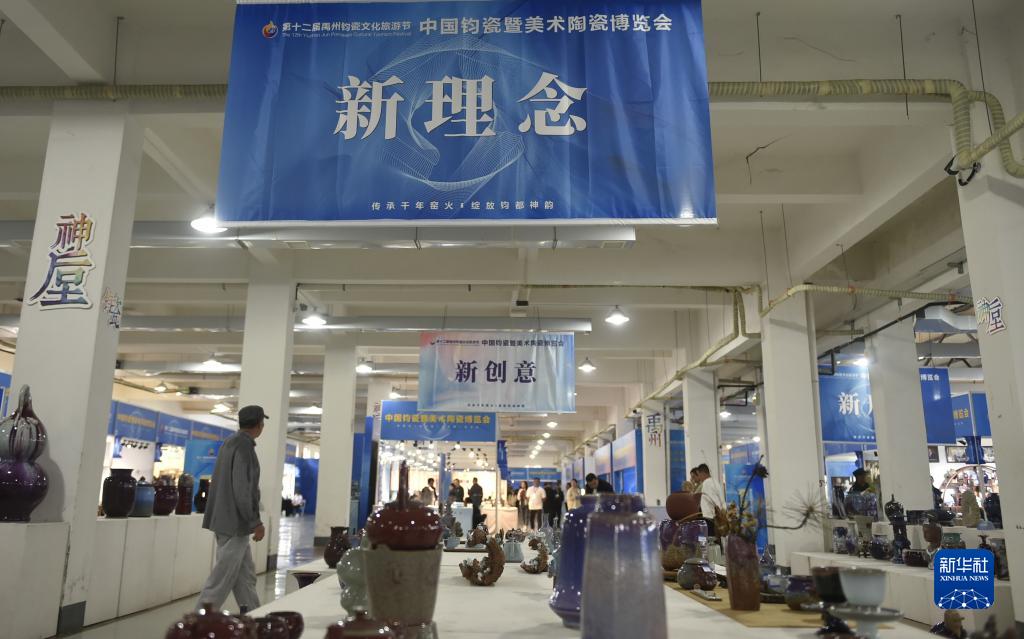 9月25日在禹州市神垕鈞瓷工業文化園內拍攝的中國鈞瓷暨美術陶瓷博覽會現場。