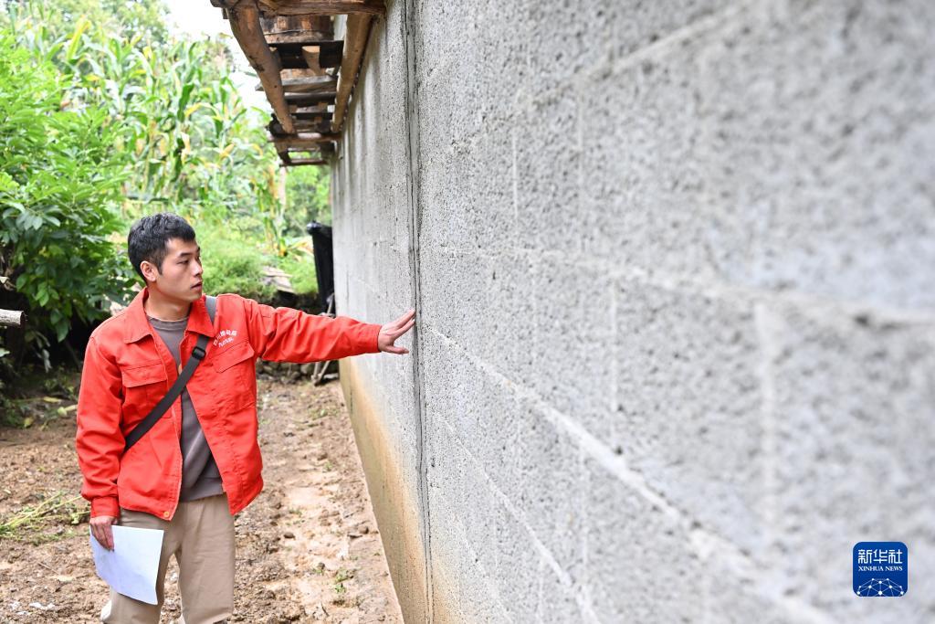 9月25日,地質工程師在重慶市巫山縣篤坪鄉腰棧村查看受損房屋情況。