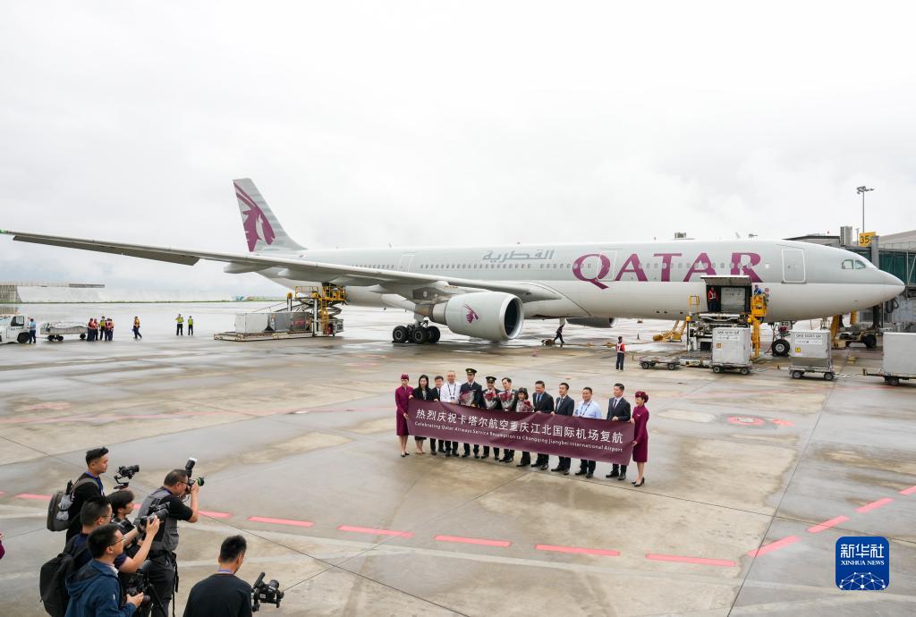 當日,隨着卡塔爾航空QR880航班順利降落重慶江北國際機場,卡塔爾航空多哈直飛重慶航線正式復航。本次復航標誌着卡塔爾航空全面恢復中國航線。據介紹,卡塔爾航空多哈直飛重慶航線每週往返各三班,由空客A330-300機型執飛。