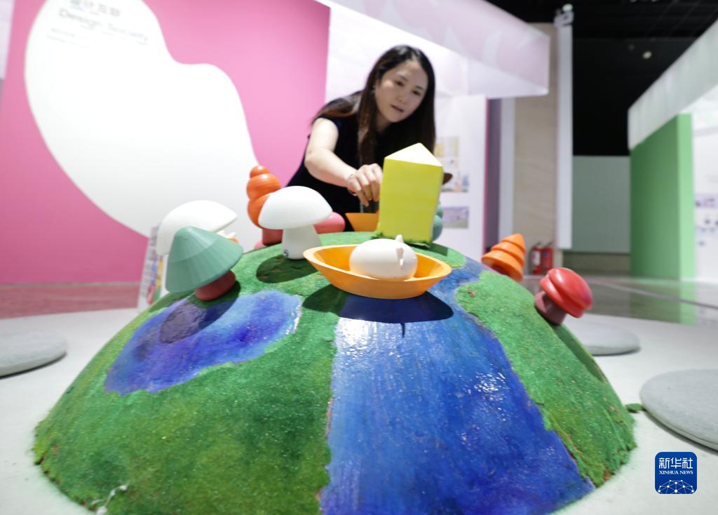 9月25日,參觀者在“童思築夢——兒童設計美育新時代”北京國際兒童設計創新體驗展上體驗互動展品。