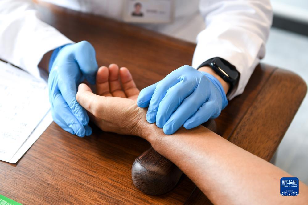 9月4日,郭鈞泯在深圳市中醫藥傳承發展研究院為病人把脈。