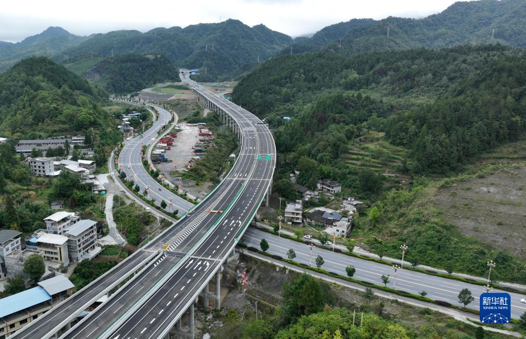 這是9月25日拍攝的湖北省恩施土家族苗族自治州境內的張南高速湖北宣鹹段(無人機照片)。