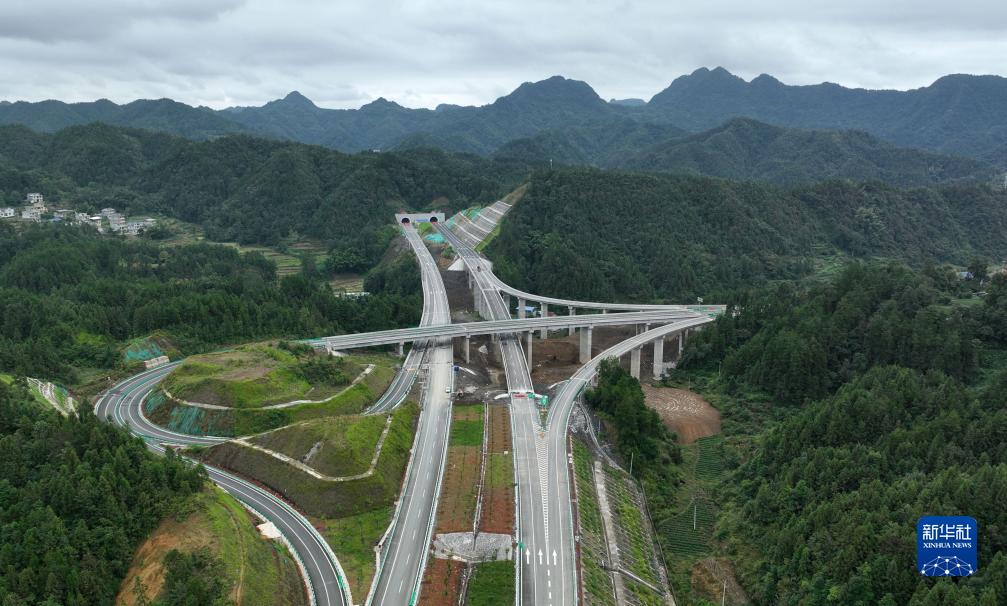 這是9月25日拍攝的湖北省恩施土家族苗族自治州境內的張南高速湖北宣鹹段三胡互通(無人機照片)。