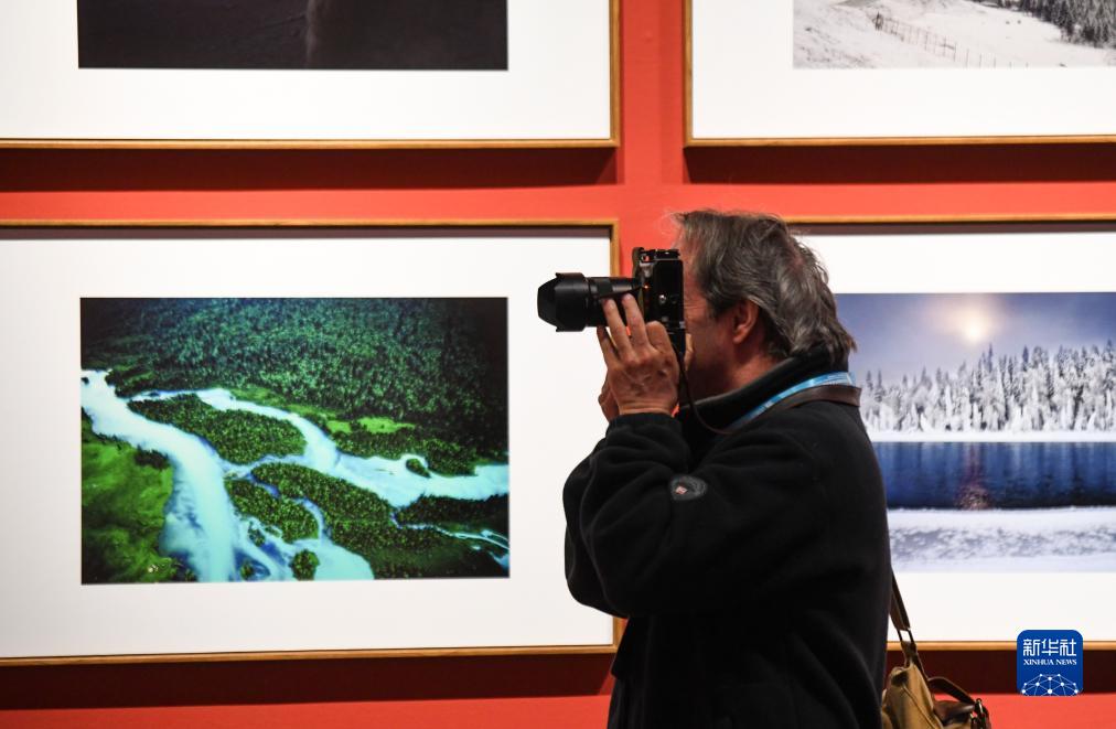 9月26日,在新疆美術館,參觀者在拍攝展出的攝影作品。