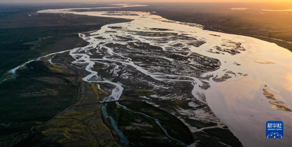黃河從內蒙古巴彥淖爾市臨河區雙河鎮流過(無人機照片,9月15日攝)。