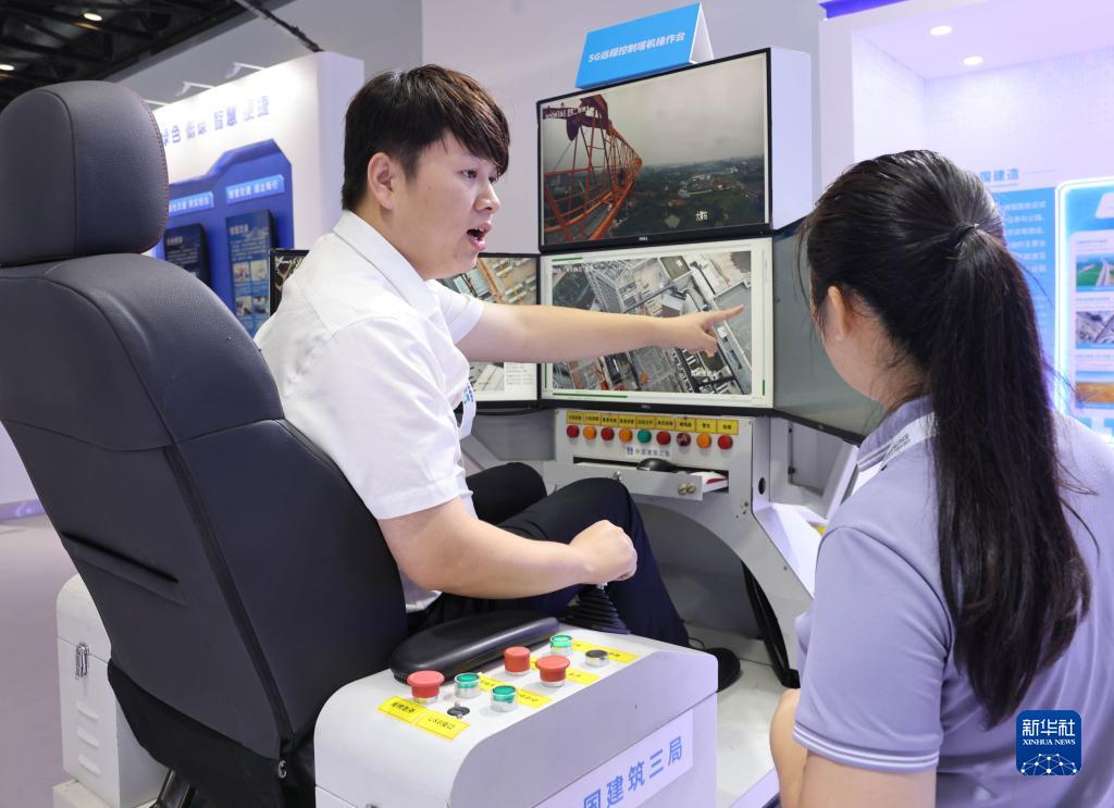 9月26日,中建三局工作人員介紹5G遠程控制塔機操作&。