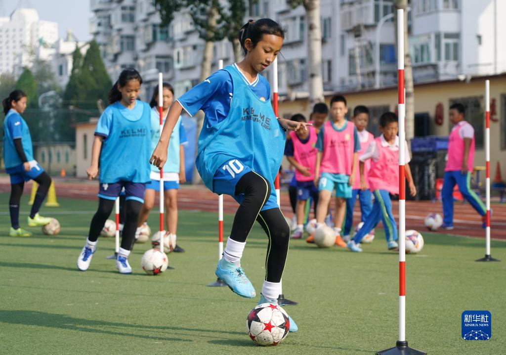 9月26日,河北省秦皇島市海港區耀華小學足球社團的學生進行足球訓練。