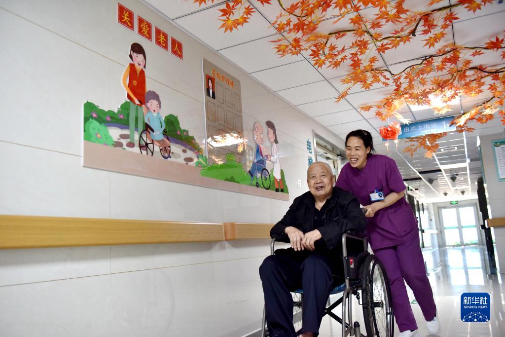 9月26日,邢&市南和區人民醫院醫養中心工作人員陪老人散心。