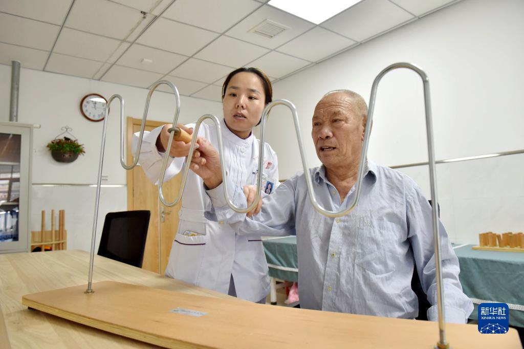 9月26日,邢&市南和區人民醫院醫養中心工作人員協助老人進行益智訓練。