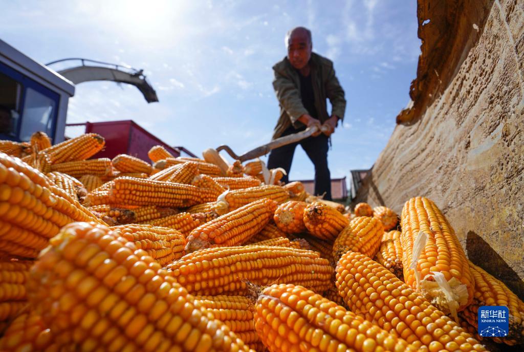 9月26日,河北省遵化市劉備寨鄉農民將收穫的玉米裝車。