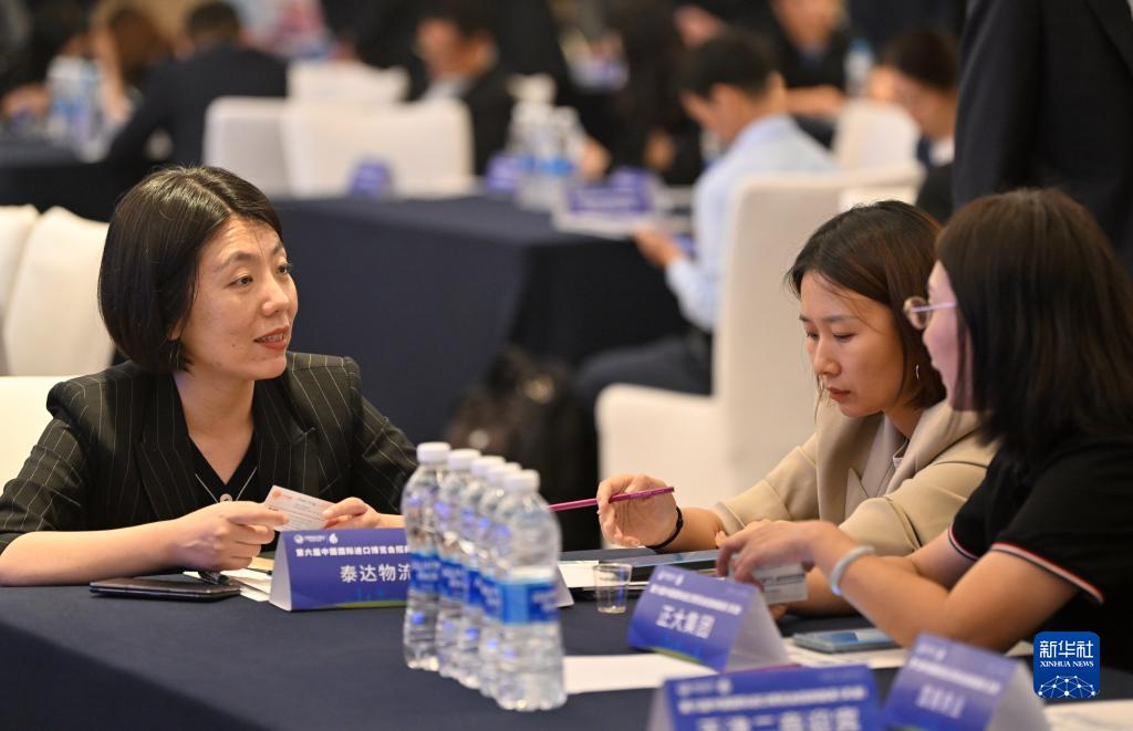 9月26日,第六屆進博會參展商代表和天津的採購商代表在活動現場交流。
