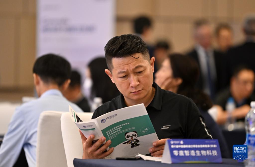 9月26日,來自天津的採購商代表在活動現場翻閱宣傳冊。