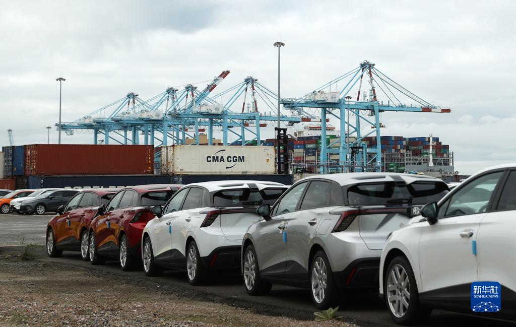 這是9月25日在比利時安特衛普-布魯日港拍攝的中遠海運(港口)澤布呂赫碼頭一角。