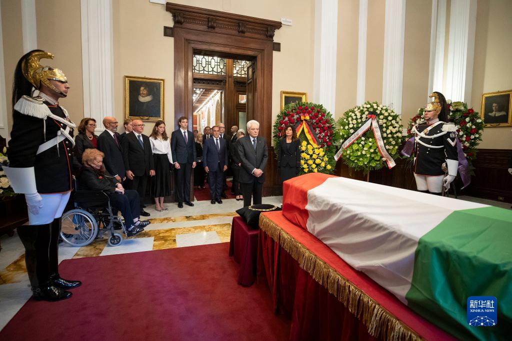 9月26日,在意大利羅馬,意大利總統馬塔雷拉站在意大利前總統喬治·納波利塔諾的靈柩前。