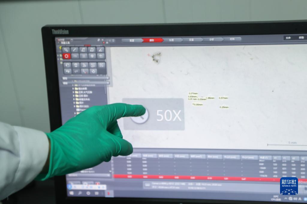 9月14日,武蓉和同學們用顯微鏡觀測水樣中的微塑料。