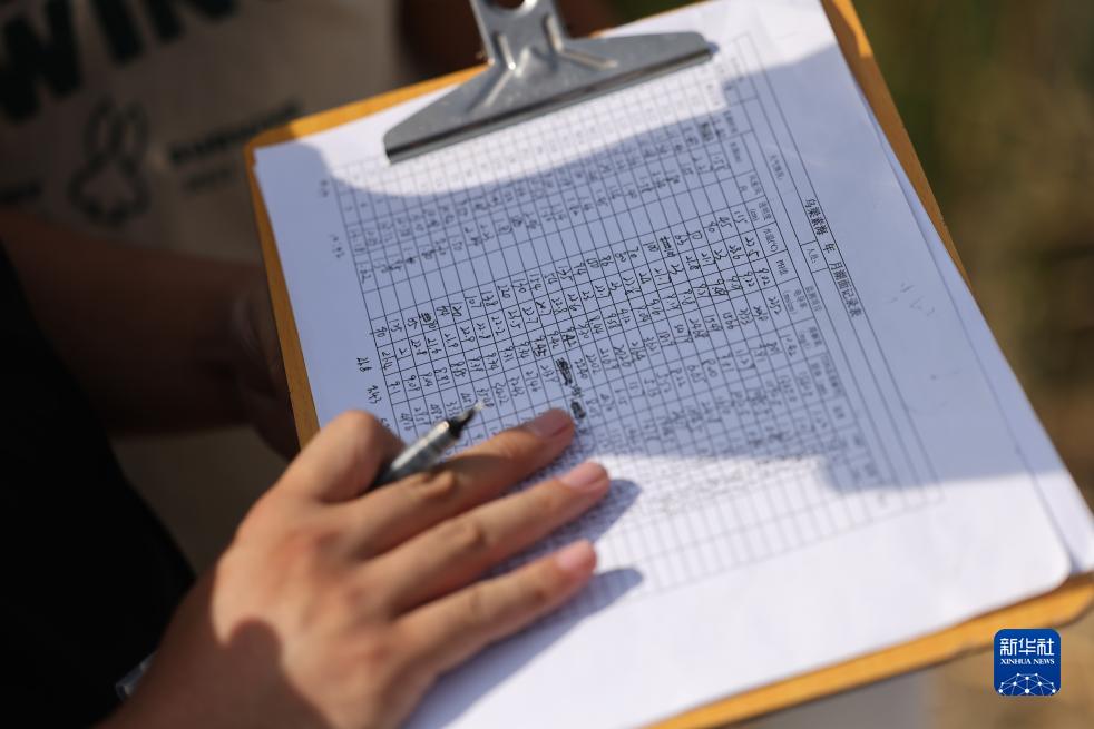 9月14日,武蓉查看烏梁素海水質監測記錄表。