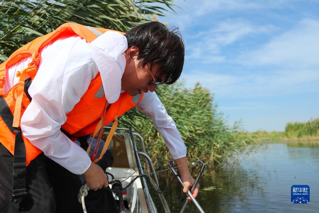 每半個月,武蓉和其他團隊成員就要“上湖”一次,乘坐快艇去收集多達25個點位的水樣、泥樣,檢測點位水質用於分析。總面積達300平方公里的烏梁素海,一次“上湖”就要一天,午飯也只能在湖心島上吃自熱米飯。一天的採樣工作下來,同學們的手都被水泡脫了皮。但是武蓉和同學們並不覺得苦,武蓉説:“烏梁素海作為河套灌區重要的濕地湖泊,監測和修復湖泊水質和水生態尤為重要。我們的工作能為湖泊的治理提供堅實的基礎資料,這就是意義所在。”