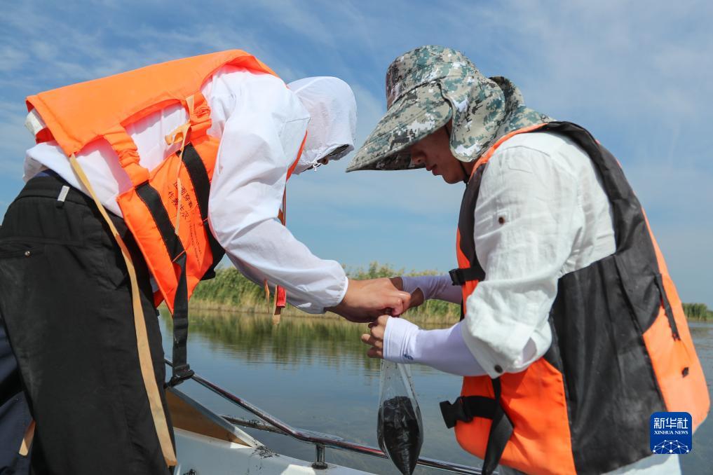 每半個月,武蓉和其他團隊成員就要“上湖”一次,乘坐快艇去收集多達25個點位的水樣、泥樣,檢測點位水質用於分析。總面積達300平方公里的烏梁素海,一次“上湖”就要一天,午飯也只能在湖心島上吃自熱米飯。一天的採樣工作下來,同學們的手都被水泡脫了皮。但是武蓉和同學們並不覺得苦,武蓉説:“烏梁素海作為河套灌區重要的濕地湖泊,監測和修復湖泊水質和水生態尤為重要。我們的工作能為湖泊的治理提供堅實的基礎資料,這就是意義所在。”